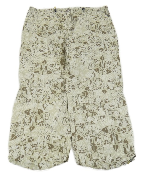 Mintovo-bílo-hnědé vzorované lehké capri kalhoty