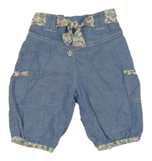 Světlemodré plátěné podšité kalhoty s kytičkami F&F