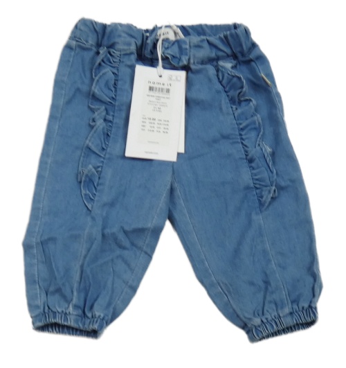 Modré lehké kalhoty riflového vzhledu s volánky a mašlí Name it