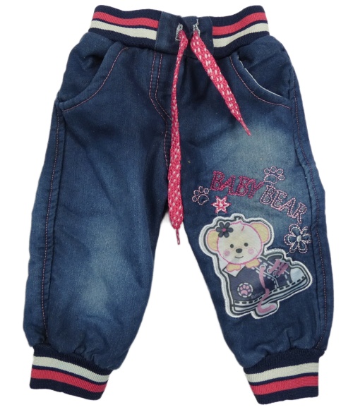Tmavomodré zateplené cuff rifle s medvídkem a úpletovým pasem