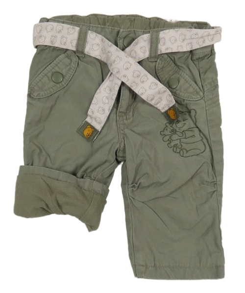 Khaki plátěné podšité kalhoty s medvídkem Pú a páskem H&M