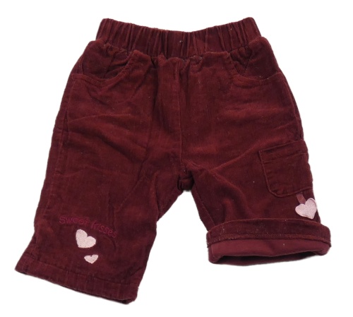 Vínové manšestrové podšité kalhoty se srdíčky