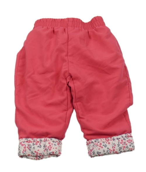 Tmavorůžové šusťákové zateplené kalhoty s kytičkami