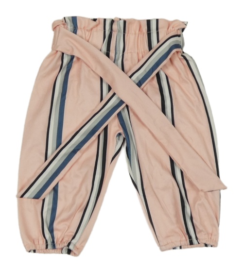 Růžovo-šedo-bílo-černé pruhované teplákové kalhoty s páskem