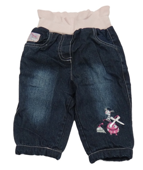 Tmavomodré podšité rifle s příšerkami a úpletovým pasem