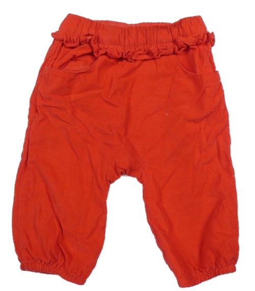 Červené podšité manšestráky s volánky