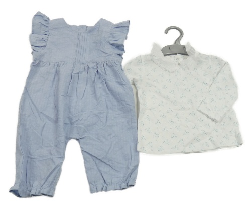 • Nové - Modrý kalhotový overal s volánkem+ bílé květinové triko Dunnes