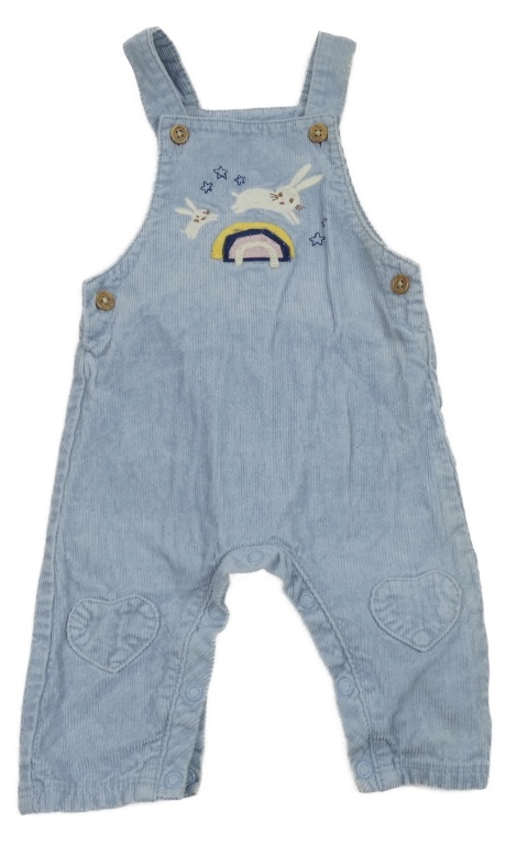 Světlemodré manšestrové laclové kalhoty se zajíčky a duhou M&S