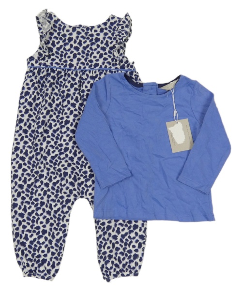 Nový - 2Set - Bílo-tmavomodro-modrofialové vzorované laclové teplákové kalhoty s volánky + modrofialové triko John Lewis