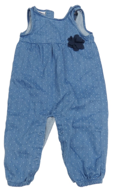 • Modrý pruhovaný puntíkatý lehký riflový kalhotový overal s 3D květem BabiesRus