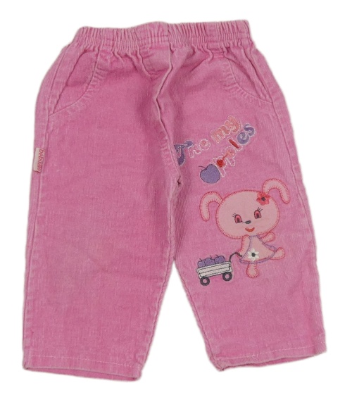 Růžové manšestráky s nápisem a výšivkou