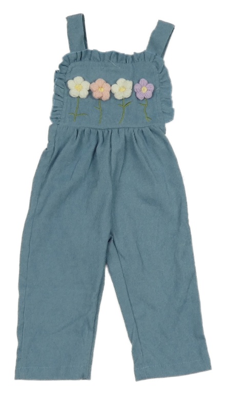 Modrý žebrovaný kalhotový overal s 3D květy a volánkem Shein