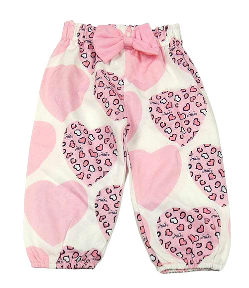 Bílé lehké kalhoty se srdíčky a mašlí