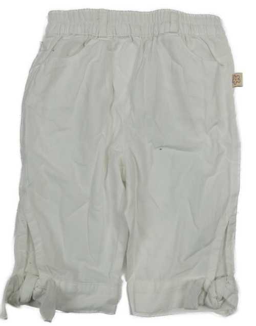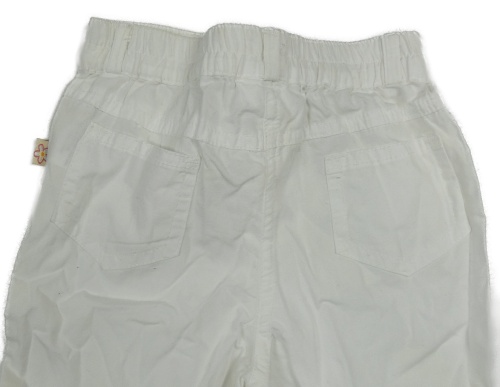 Bílé plátěné crop kalhoty s mašlemi