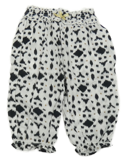 Bílo-černo-zlaté vzorované paper bag lehké kalhoty s mašlí Kitchoun
