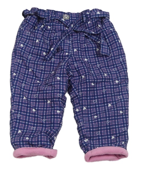 • Tmavomodro-růžové kostkované šusťákové zateplené kalhoty se srdíčky Ergee