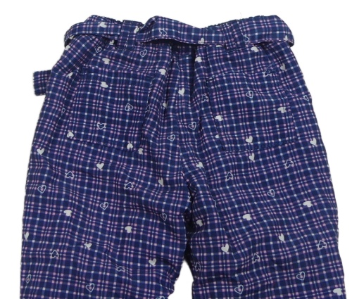 Tmavomodro-růžové kostkované šusťákové zateplené kalhoty se srdíčky Ergee