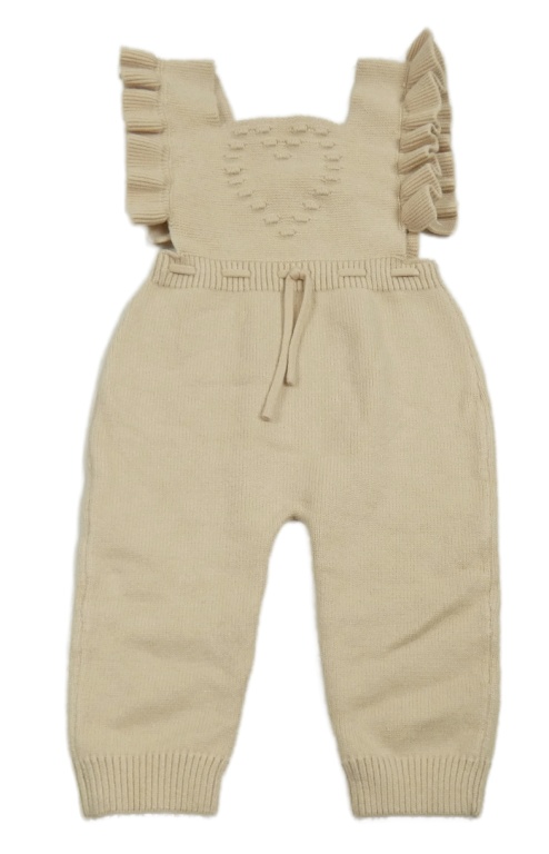 Béžový pletený kalhotový overal s volánky a srdcem Shein