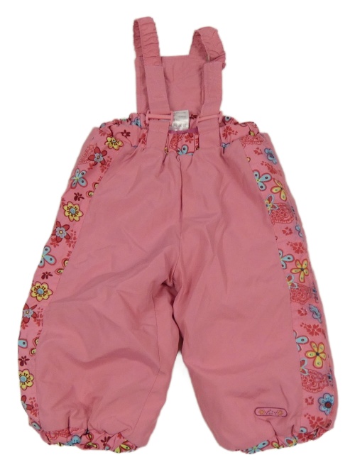 Růžové šusťákové laclové oteplovačky s květovanými pruhy a kšandami