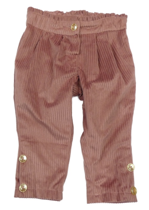 Růžové sametové žebrované podšité kalhoty