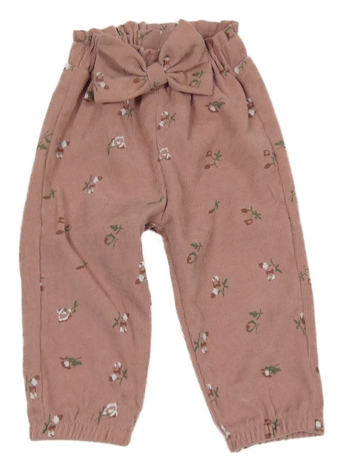 Starorůžové květované žebrované kalhoty s mašlí