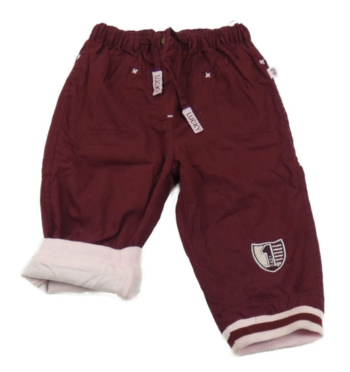 Vínové plátěné podšité kalhoty s výšivkou