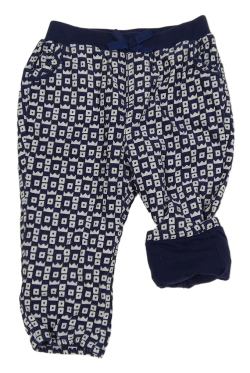 • Tmavomodro-bílé vzorované manšestrové podšité kalhoty s mašlí a úpletovým pasem John Lewis