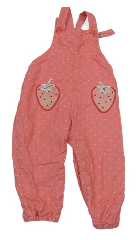• Růžové puntíkaté manšestrové podšité laclové kalhoty s jahodami Mini Boden