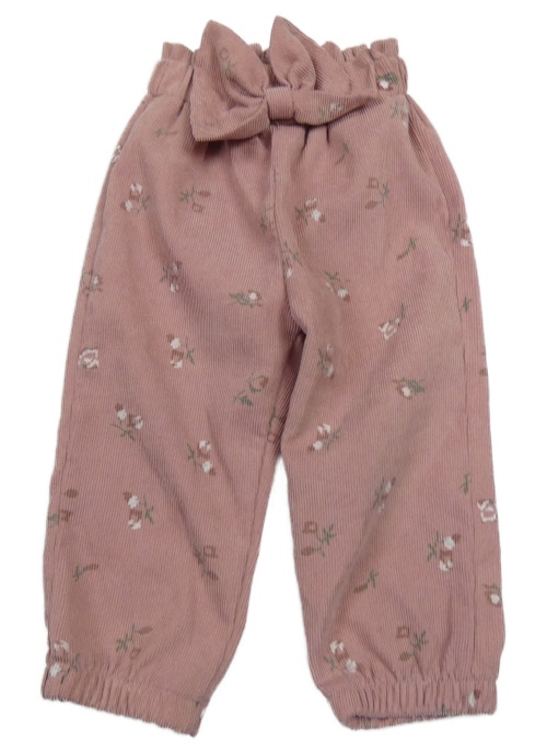 Starorůžové manšestrové kalhtoy s kytičkami a mašlí