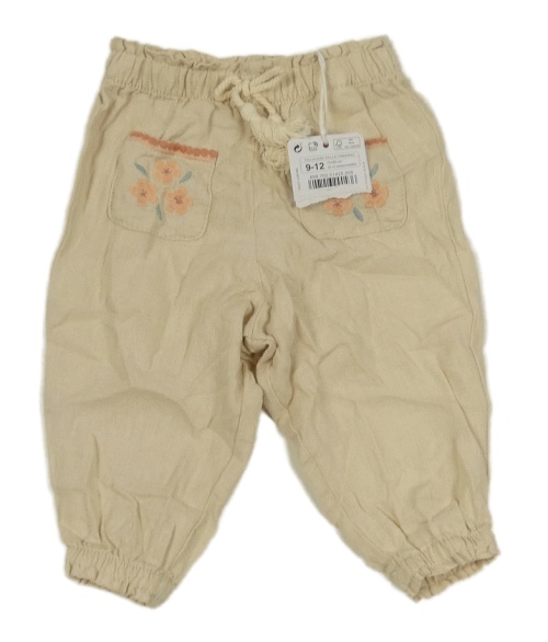 Nové - Béžové lněné kalhoty s kapsami s výšivkami květin Sfera