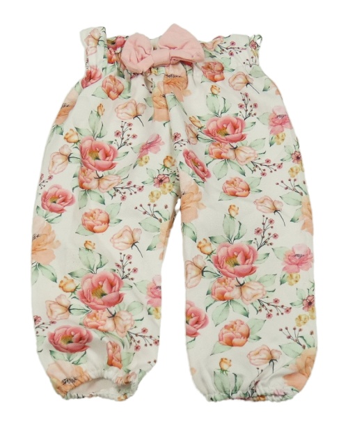Bílé květované harémové kalhoty s mašlí