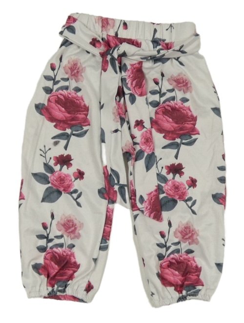 Bílé květované harémové kalhoty s mašlí