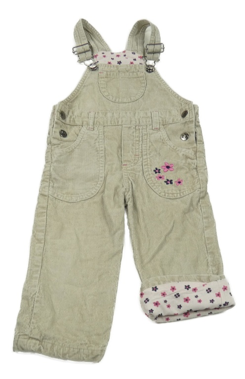 • Šedo-zelené manšestrové podšité laclové kalhoty s květinami Impidimpi