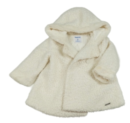 Smetanový huňatý podšitý kabát s kapucí Mayoral
