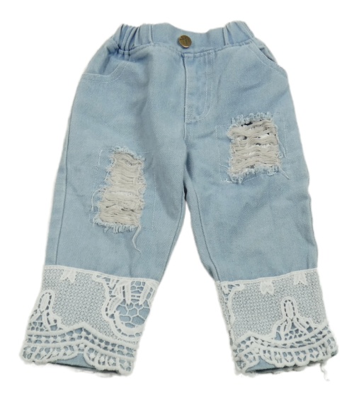 Světlemodré rifle s prošoupáním a krajkou