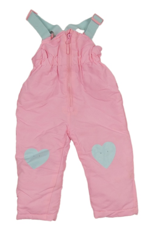 Neonově růžové šusťákové oteplovačky s kšandami a srdíčky