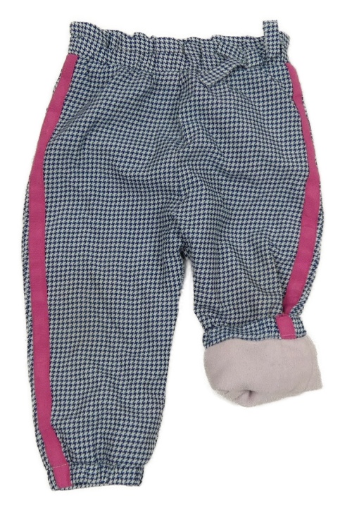 Tmavomodro-bílé vzorované šusťákové zateplené kalhoty s pruhem Ergee