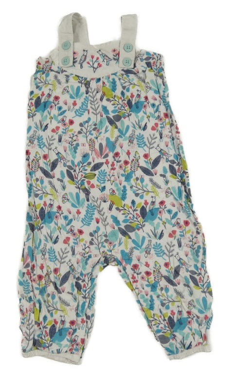 Bílé květované plátěné laclové kalhoty s ptáčky Frugi