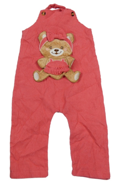 Korálové žebrované laclové kalhoty s medvědem