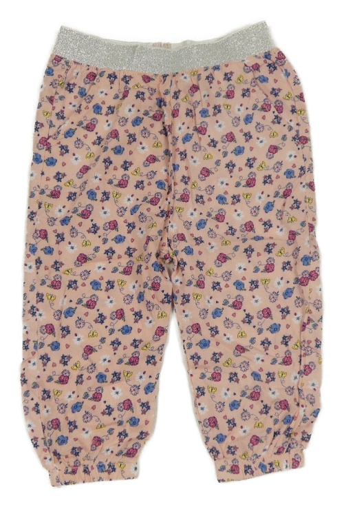 Světlerůžové květované kalhoty se stříbrným pasem Ergee