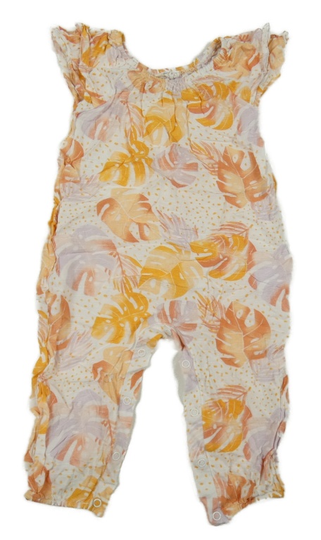 Bílo-žluto-korálový lehký kalhotový overal s listy Primark