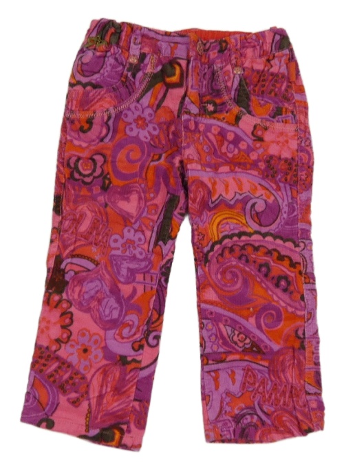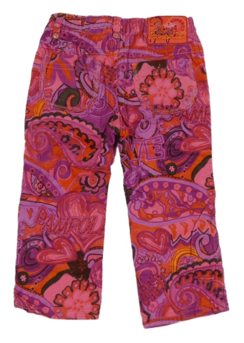 Tmavorůžovo-fialové vzorované manšestrové kalhoty Pampolina