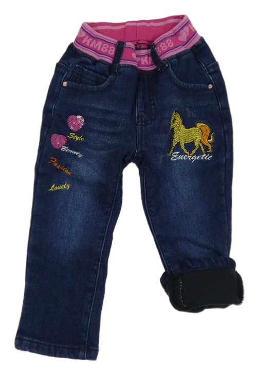 Tmavomodré thermo skinny rifle s koníkem a růžovým pasem