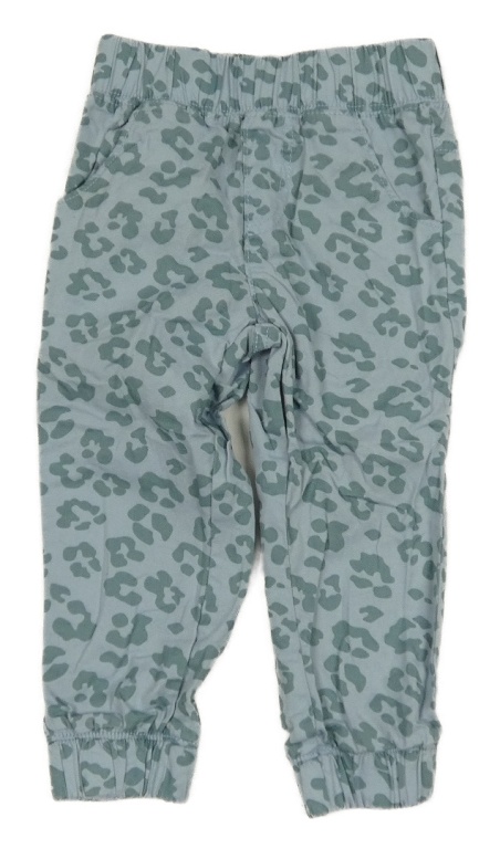 Modro-zelené plátěné cuff kalhoty s leopardím vzorem Tchibo