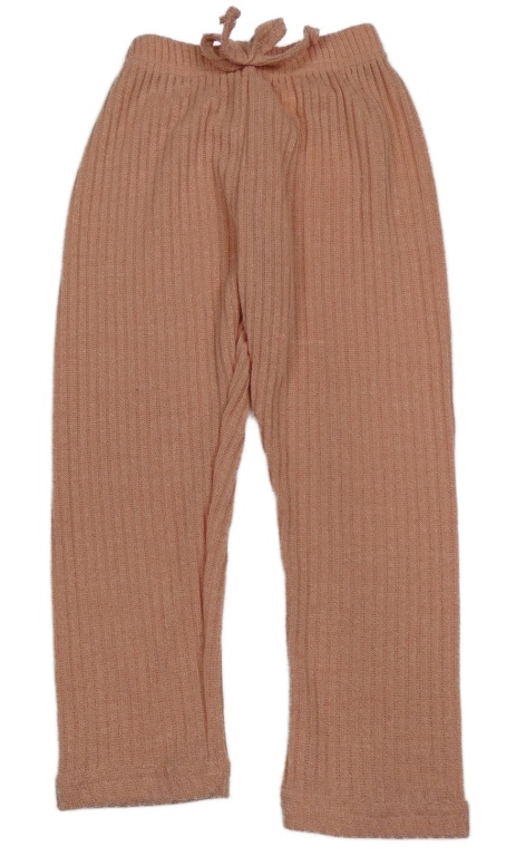 Broskvové melírované žebrované úpletové kalhoty s mašlí