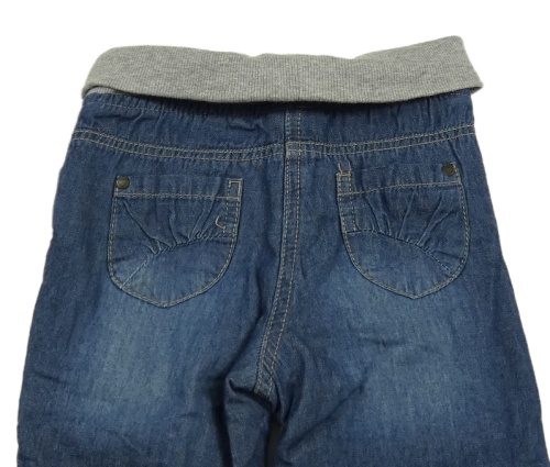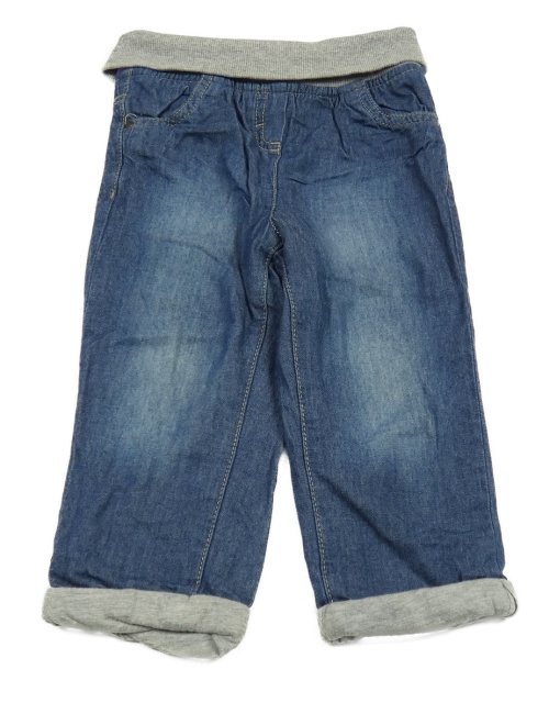 Modré podšité kalhoty s šedým úpletovým pasem