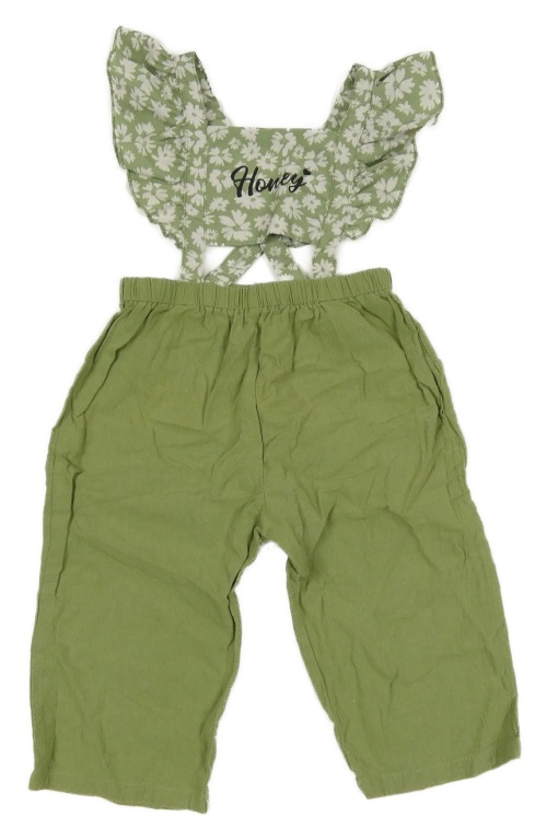 Zelené lehké kalhoty s kšandami s květy a volány Shein