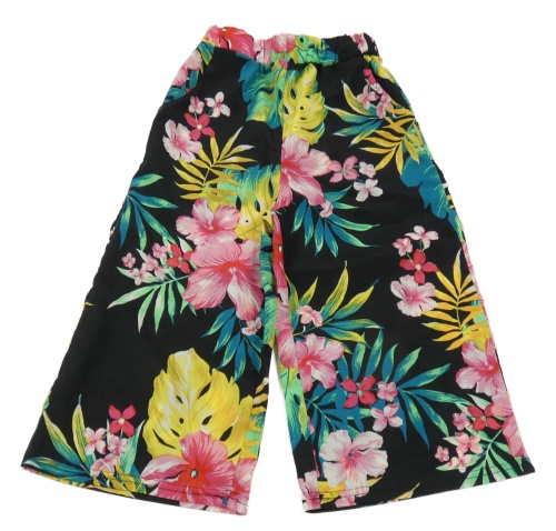 Černé lehké kalhoty s květinami