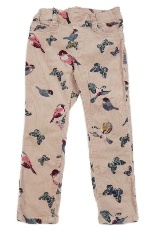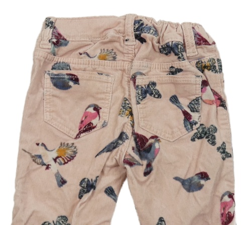 Růžové manšestrové elastické kalhoty s motýly a ptáčky H&M