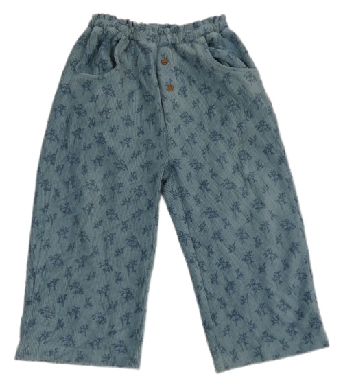 Modrošedé žebrované paper bag široké sametové kalhoty s kytičkami Next